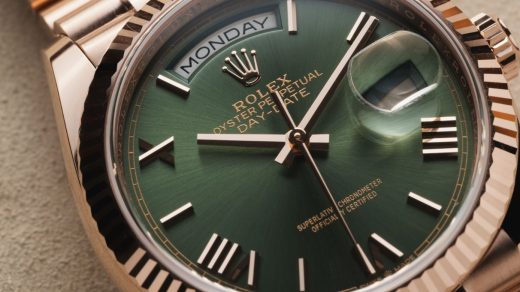 The best fake Rolex automatic chronometer in-house 9001 calibre self-winding movement includes the dual time zone function. With 12 apertures around the edge of the dial indicating the month and the centre disk with its 24-hour display and date at the 3 o’clock position.