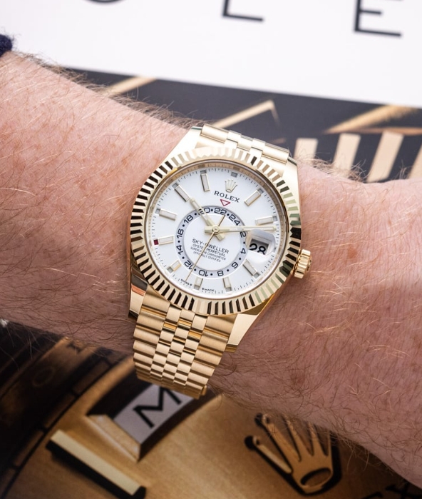 Honest question: why do people like the Sky-Dweller? Is it because the travel watch with the Saros annual calendar and Ring Command is a complicated piece of watchmaking? Is it the characteristic dial layout, perhaps? Or is it because if you wear this 42mm watch in precious metal, everybody within a hundred-meter radius will know you’re sporting a costly Rolex? I never felt the need to “board” the most complicated replica watches UK in Rolex’s current collection, but this Monday, I’m trying to get airborne with the Rolex Sky-Dweller in yellow and Everose gold.