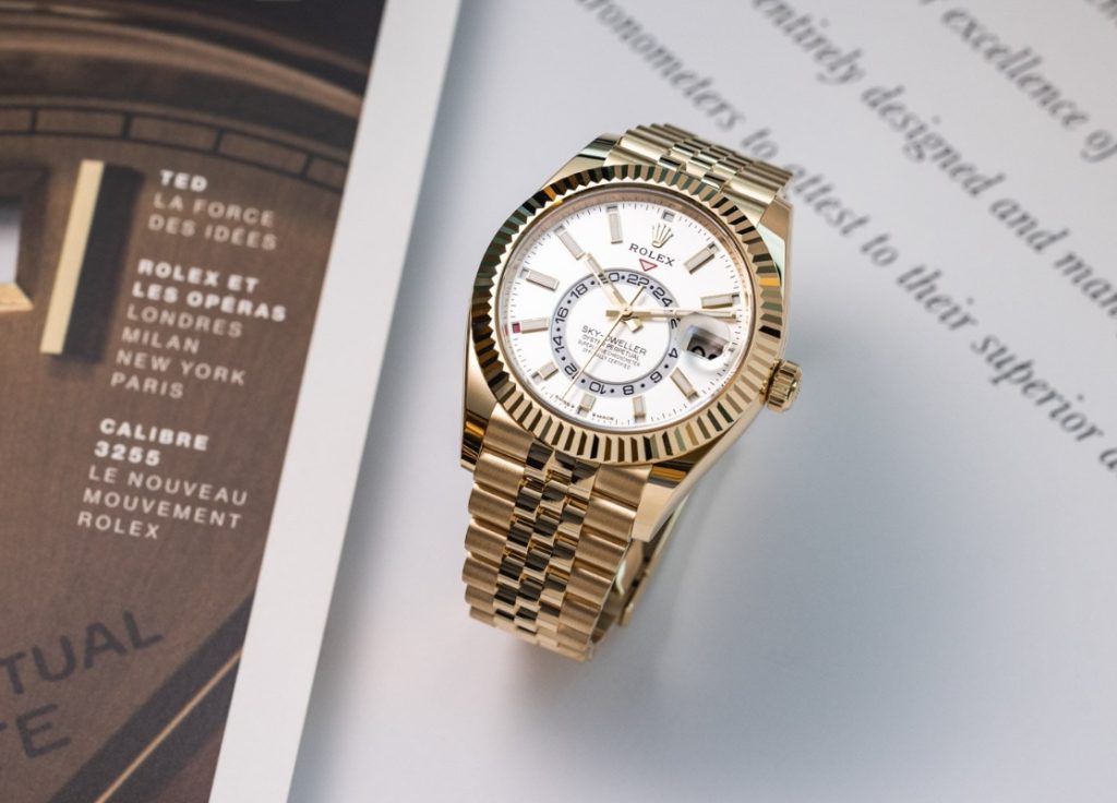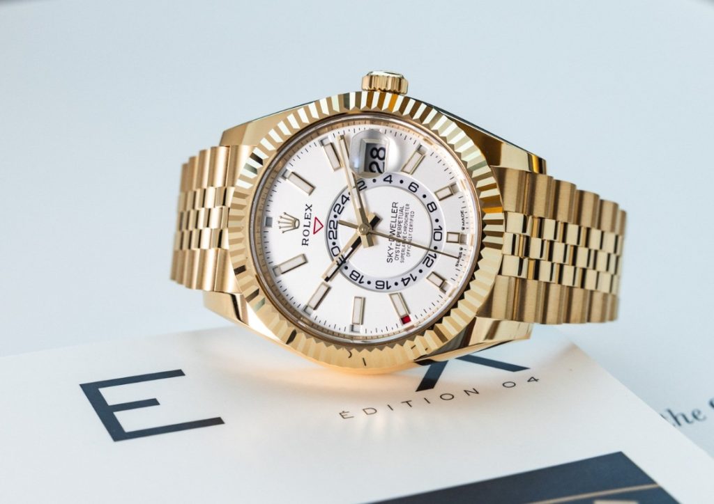 The two Sky-Dweller models that Rolex introduced last year were not completely new. The full-gold Jubilee bracelets were new, but the automatic caliber 9002, for instance, wasn’t. This chronometer-certified movement is a 2023 update of the caliber 9001. It is equipped with the Chronergy escapement and provides a power reserve of 72 hours with an average accuracy of ±2 seconds per day.